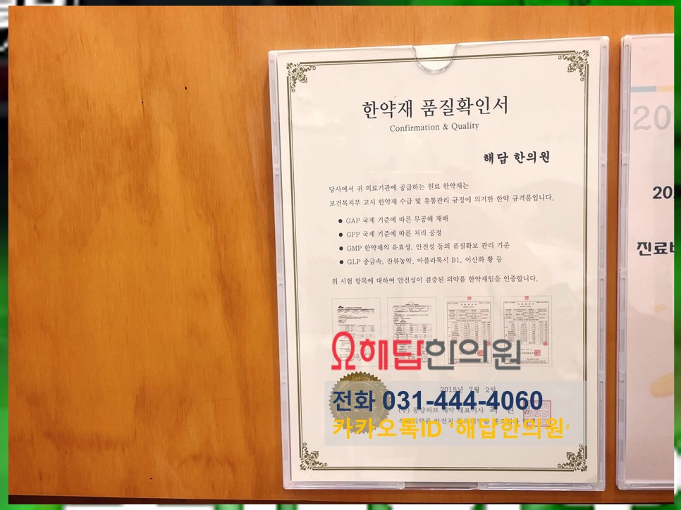 해답한의원의 보감탕은 식약처 기준을